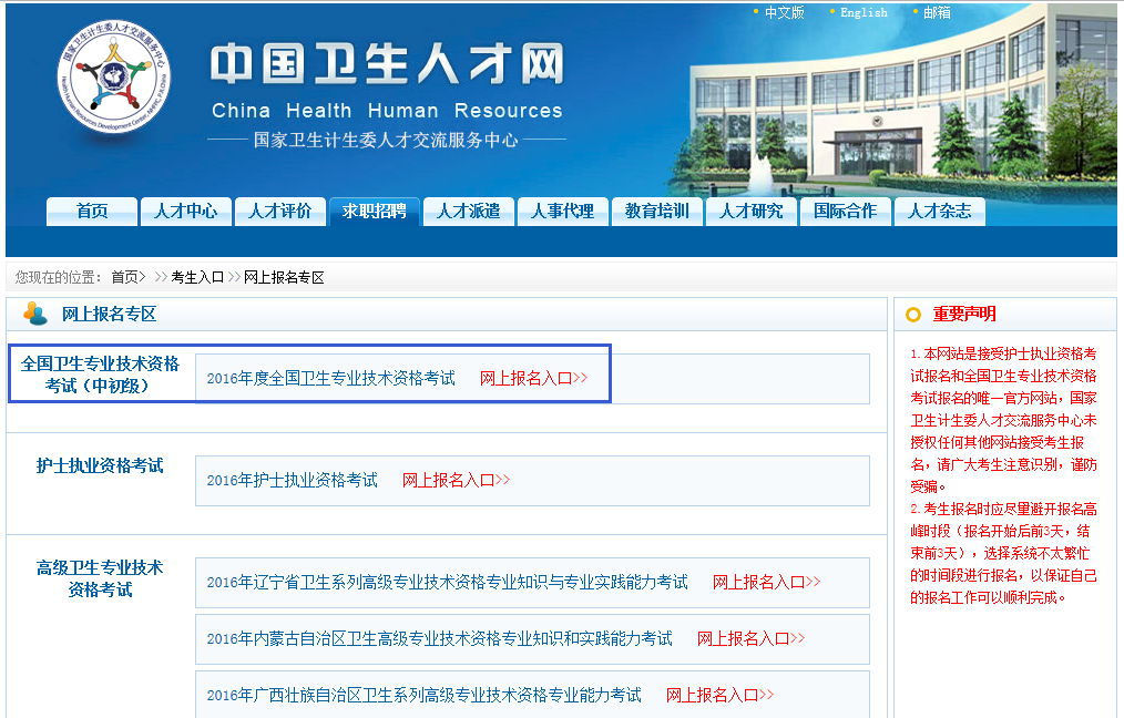 医疗卫生人才网讯:2016年卫生专业技术资格考试网上报名入口开通!