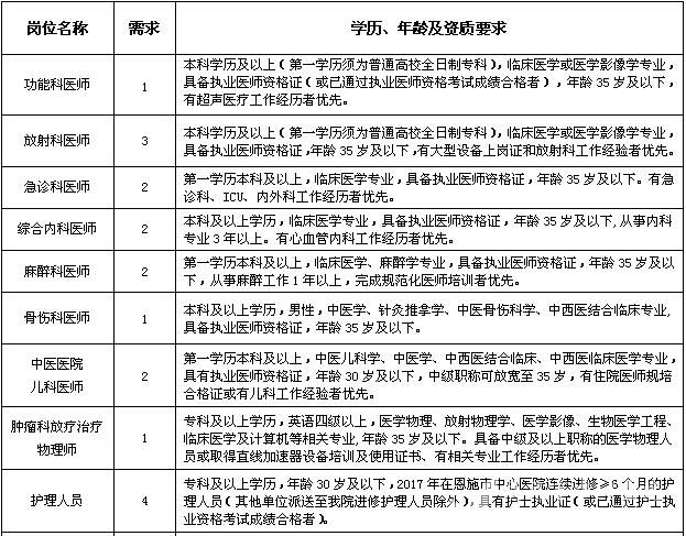 4、年龄要求:紧缺专业35岁及以下(1982年1月1日后出生),一般专业30岁及以下(1987年1月1日后出生),硕士、博士研究生或高级职称年龄可适当放宽。
