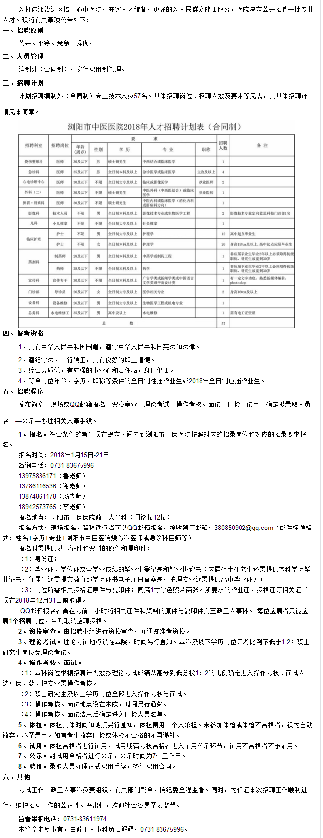 2018湖南长沙浏阳市中医医院公开招聘57人公告