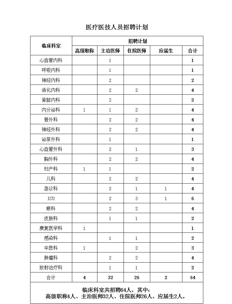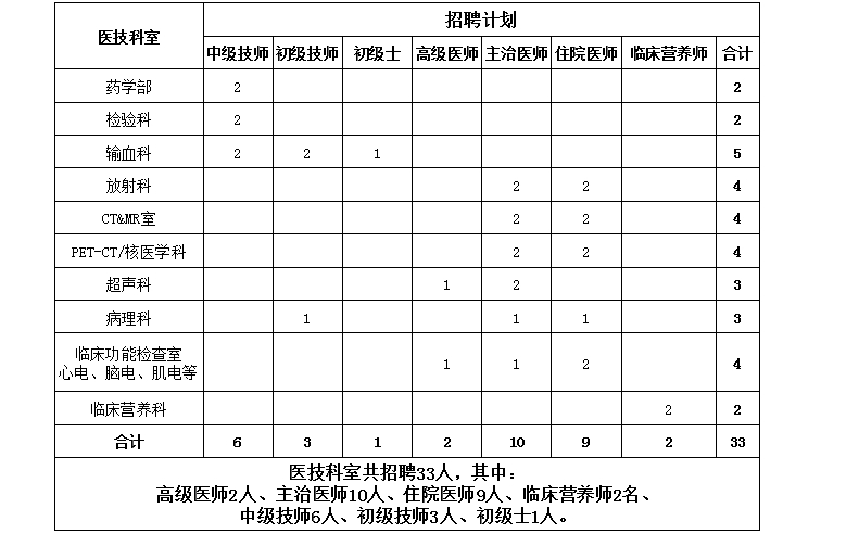 现因工作需要,公开招聘临床、医技工作人员若干名: