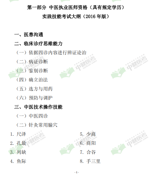 国家医学考试网;2018年中医执业医师资格实践技能考试大纲